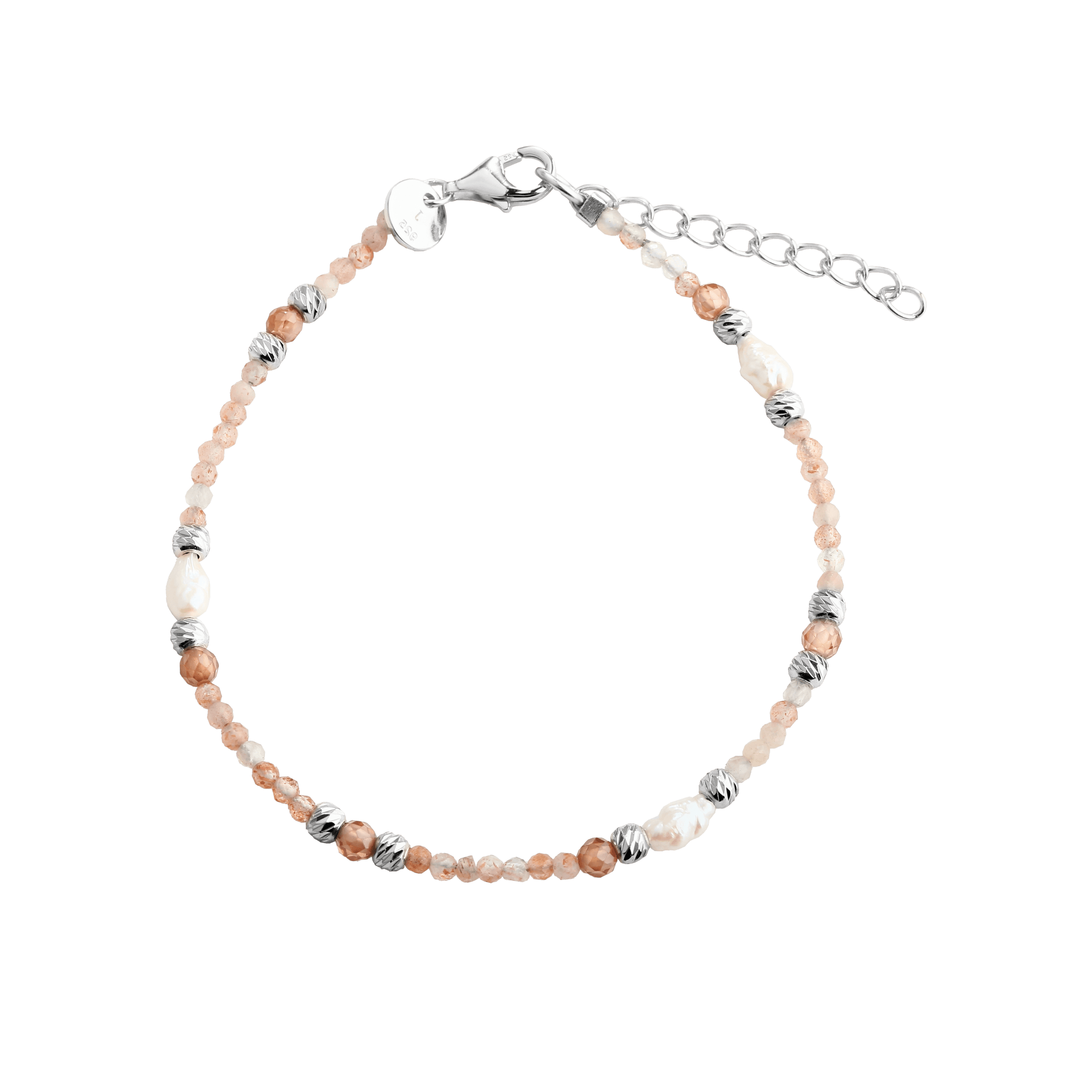 Armbånd SUNELLA SIMPLE med rosa halvædelsten, perler & twistet sølvkugler.