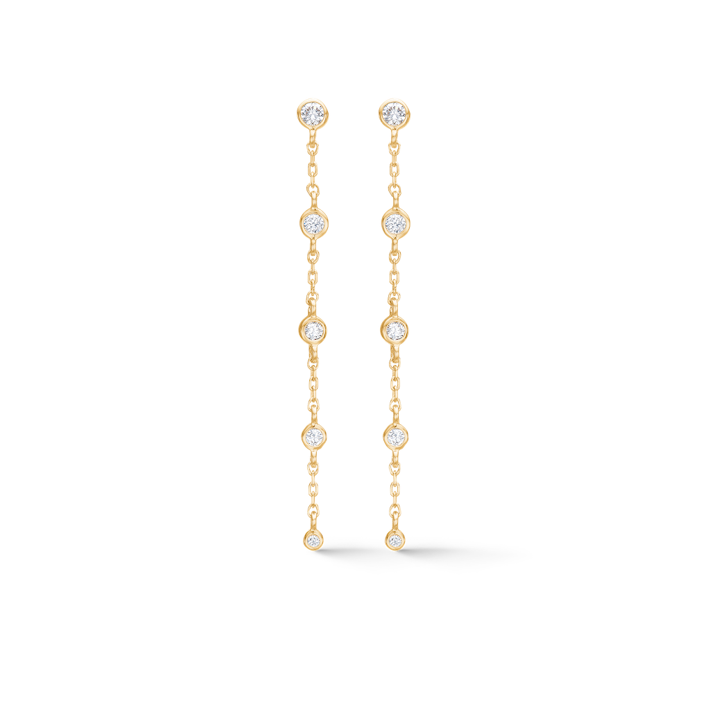 Designer Mads Ziegler har formet dette signatursmykke med inspiration fra den ubrudte rytme, der opstår, når gyldne led forbindes i en lige linje. De bezelindfattede brillanter er placeret rytmisk langs øreringenes kontur og skaber et harmonisk spil mellem lys og struktur. Hver diamant iscenesætter tilstedeværelsen af endeløs tiltrækningskraft, hvor moderne dansk formsprog forenes med klassisk håndværk og symbolsk balance. Smykket fortæller historien om tidløs æstetik og en individuel stil, der underbygger bærerens personlige styrke.
