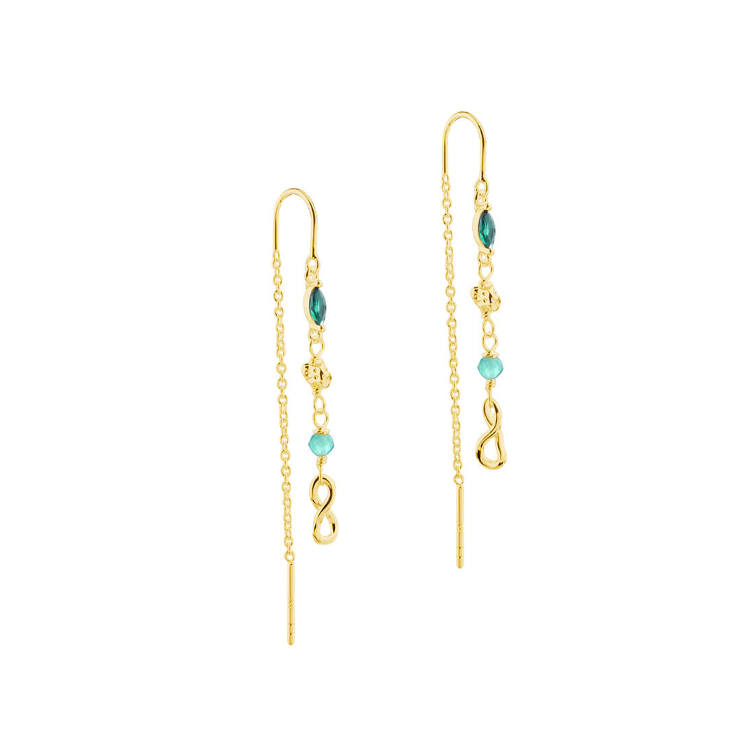 Green Garden øretråde i forgyldt 925 sterling sølv med grøn agate og zirkonia