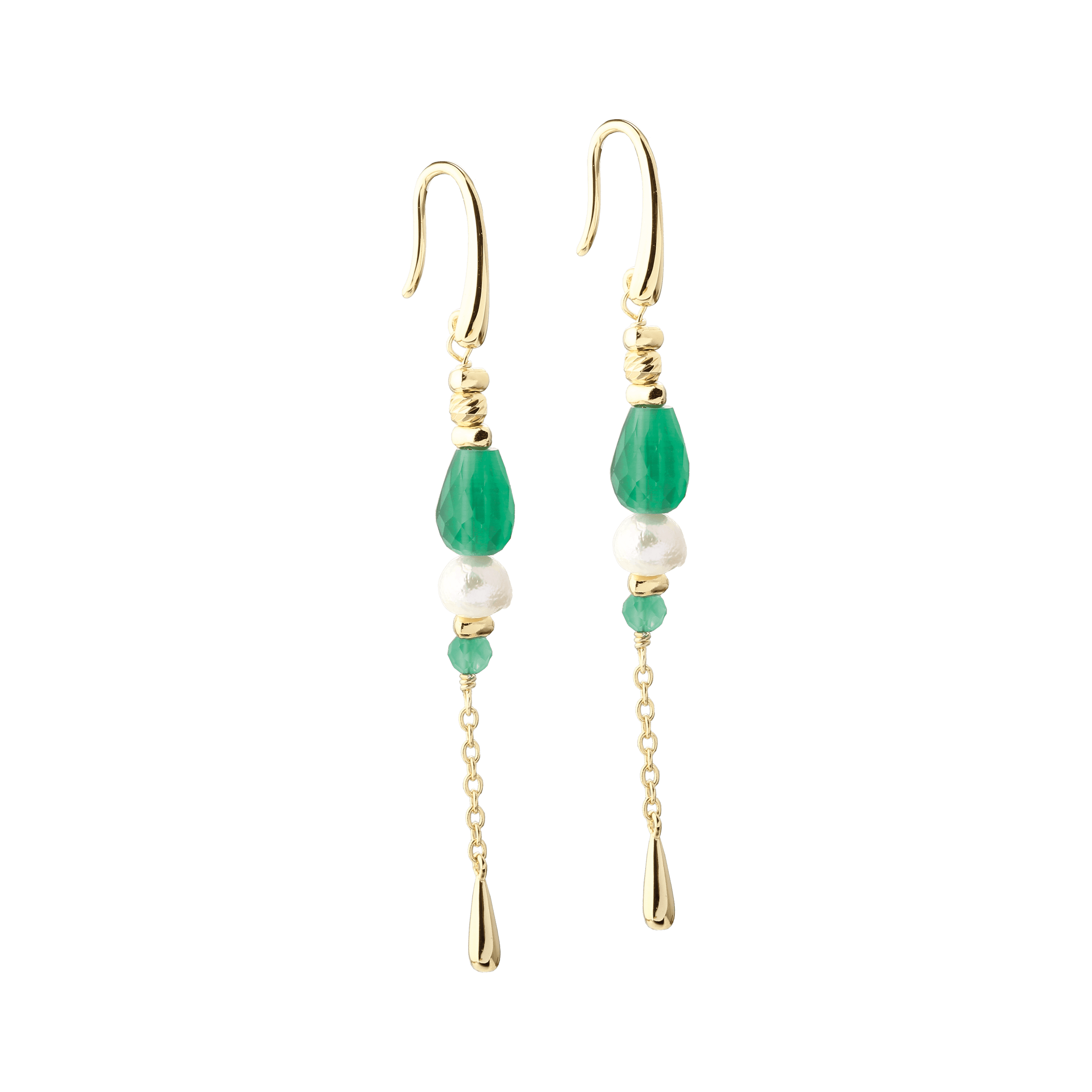 VERDE DROP ørebøjler i forgyldt sterling sølv med grøn onyx og ferskvandsperler fra Aqua Dulce.