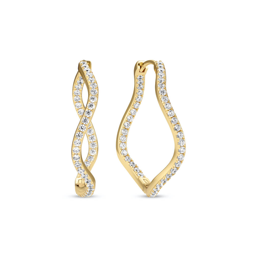 Øreringe af 18 karat forgyldt 925 sterling sølv, poleret overflade og håndsat med facetterede hvide zirkoner.
