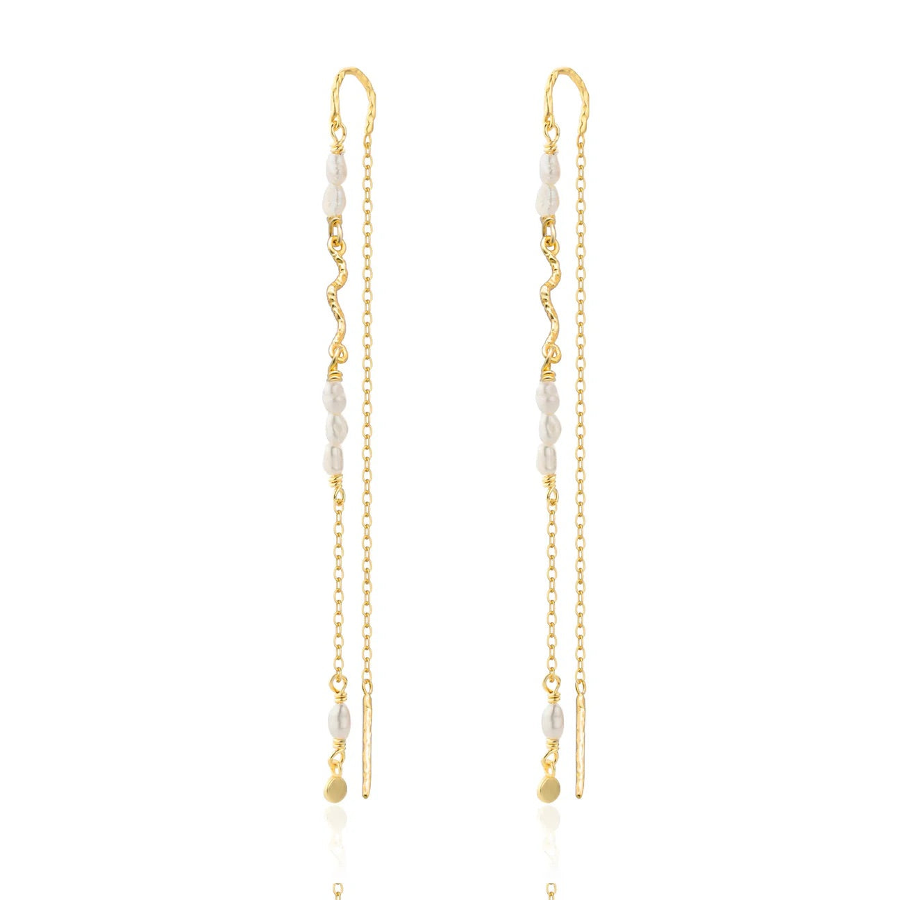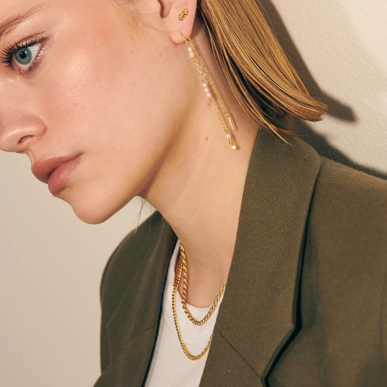 Ima er et par fine kæde øreringe med fine ferskvandsperler. - de passer perfekt til at mixe med stilrene øreringe, men kan også sagtens bæres alene for et elegant eller råt look, alt efter egen stil!
