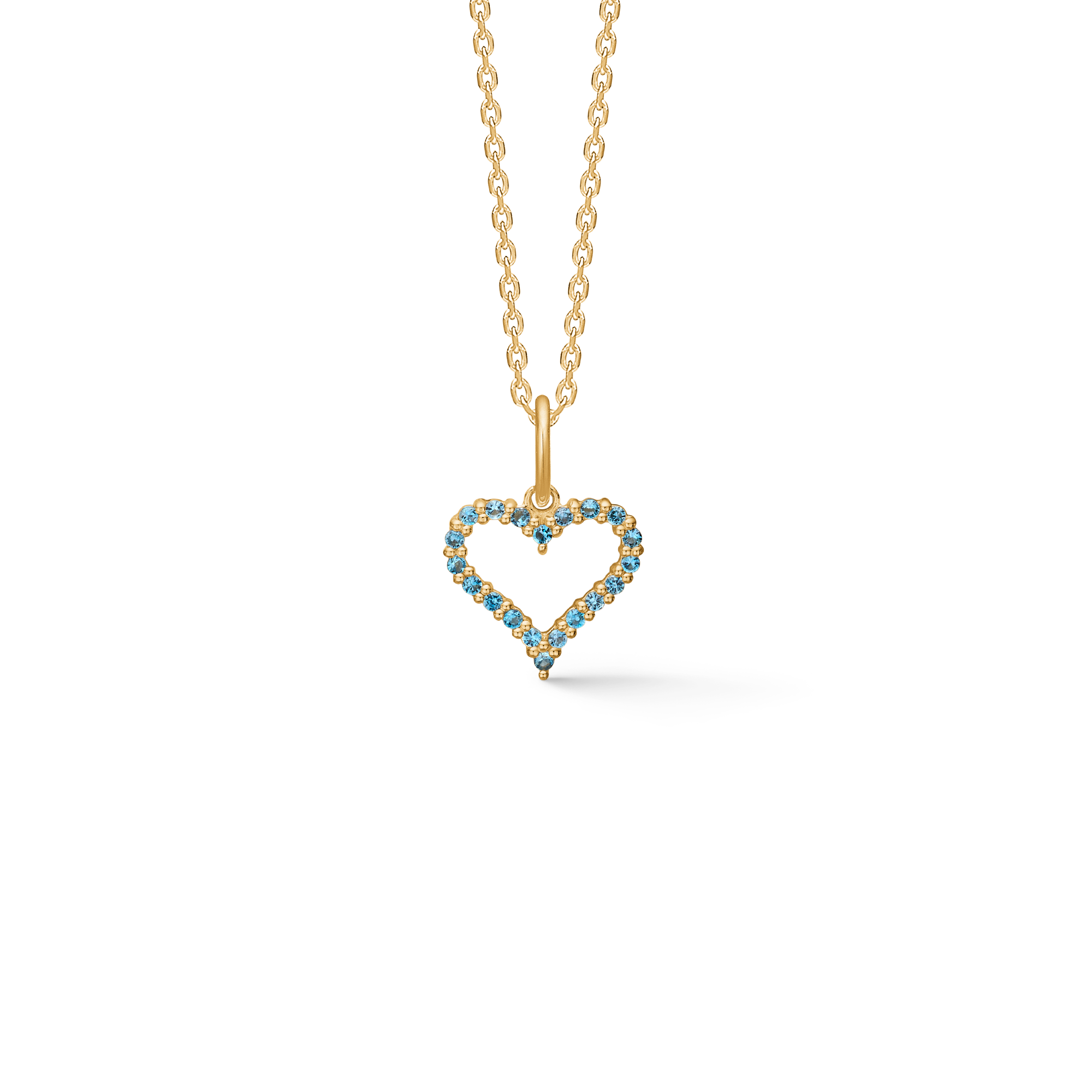 Tender heart vedhæng i 14 kt. guld med blå topas. Måler 9 mm.