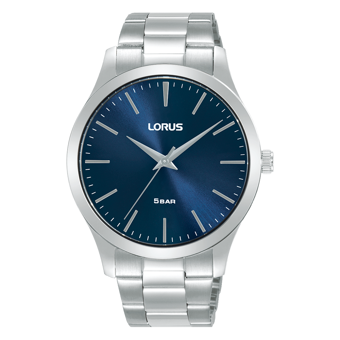 Herreur fra Lorus med stål kasse. Uret har stållænke, er vandtæt til 5 bar og har mineralglas. Skivens farve er blå og uret måler 40 mm i diameter.