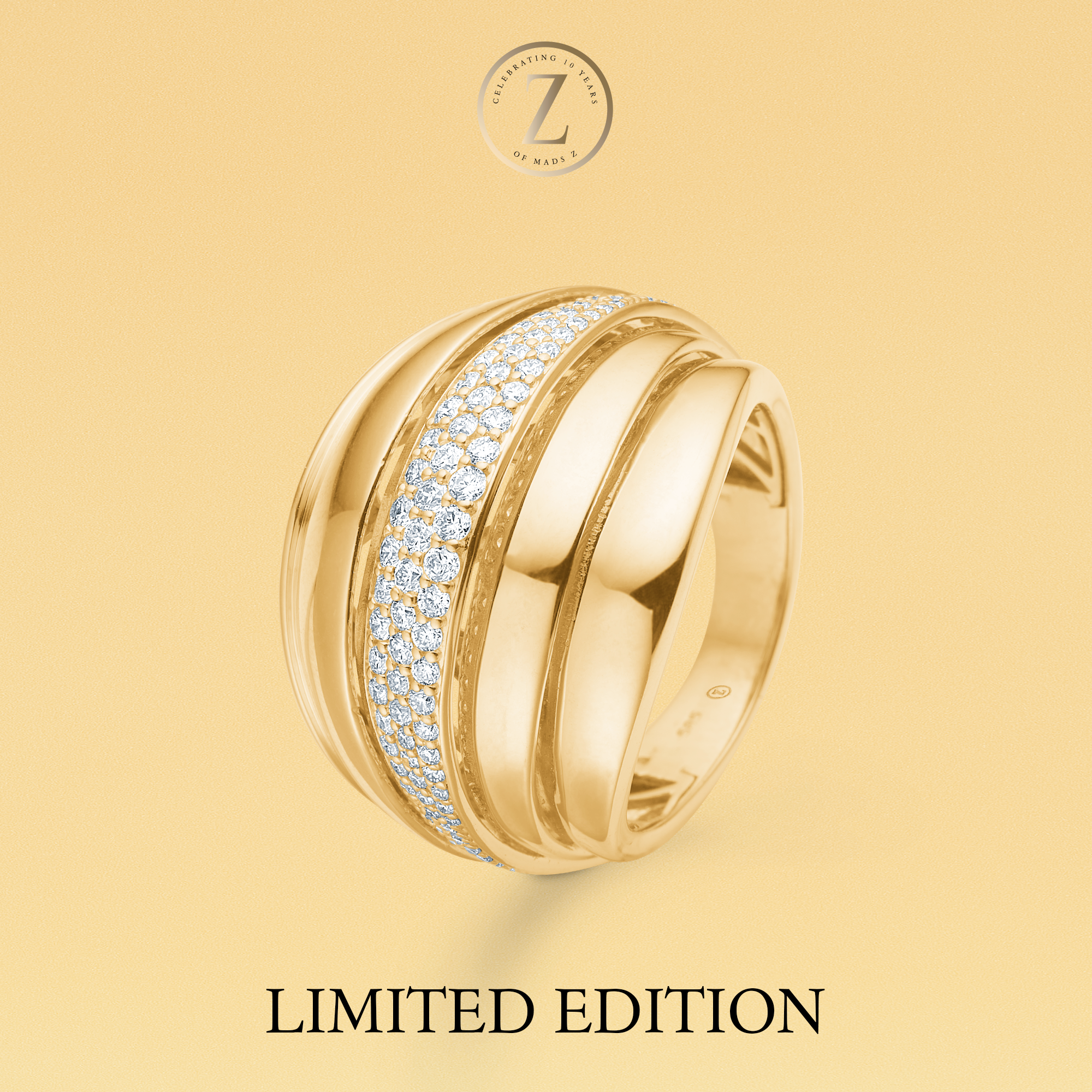 Designer & brand-owner Mads Ziegler markerer 10-års jubilæet i 2025 med Opera, der kun fremstilles dette år i et limiteret oplag. Ringen hylder det danske designarv med inspiration fra operahuset i Sydney, skabt af landsmanden Jørn Utzon, og markerer relationen til virksomhedens australske samarbejdspartner. De fire sammenvævede bånd i 14 karat guld og omhyggeligt udvalgte brillanter tilføjer både arkitektonisk lethed og symbolik til formen.