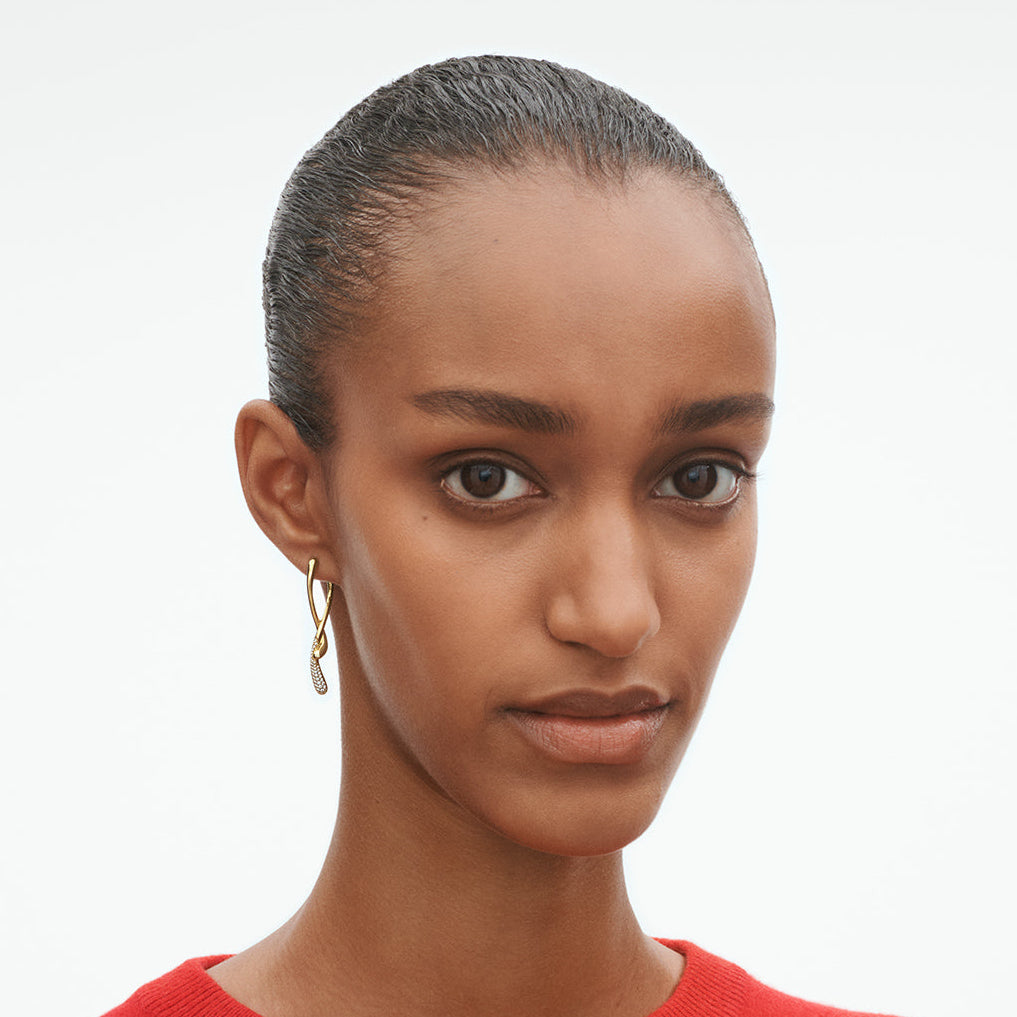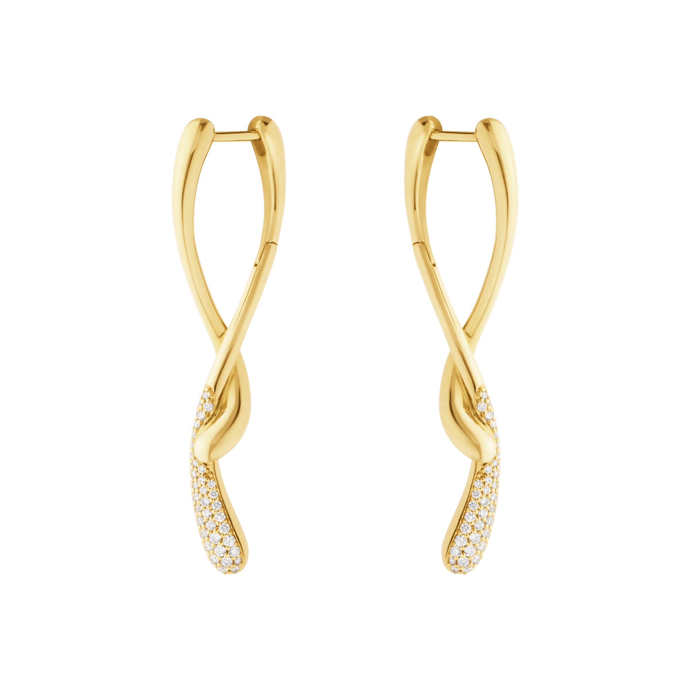 Den snoede form er et definerende element i Jacqueline Rabuns Mercy kollektion, inspireret af timeglassets facon, som symboliserer tidens gang og livets veje. Disse øreringe i 18 karat guld, besat med brillantslebne diamanter, fortolker den snoede form i et elegant og skulpturelt design.