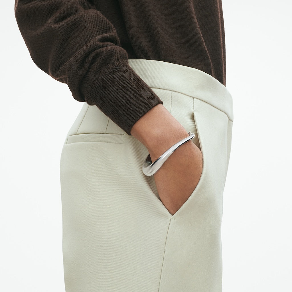 Denne armring fortolker Offspring kollektionens skulpturelle linjer i en tidløs form, designet af Jacqueline Rabun. Armringen er udført i sterlingsølv, og hængsellåsen er en integreret og naturlig del af designet. Smykket giver et elegant look både til hverdagsbrug og særlige lejligheder.