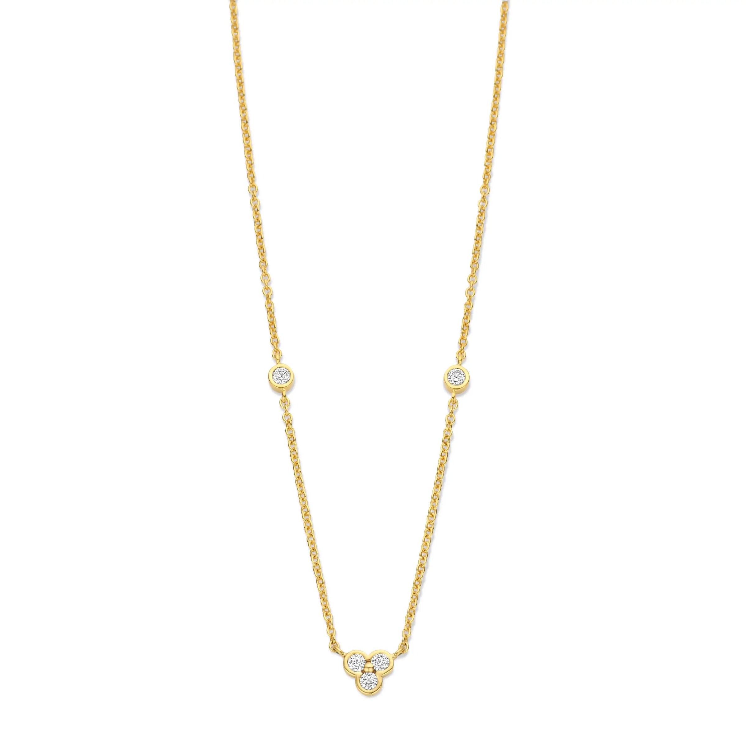 Alma Necklace er et smukt smykke med zirkonia-sten, fremstillet i genanvendt 18kt forgyldt 925 sterlingsølv. En bæredygtig og stilfuldt halskæde, der udstråler klassisk skønhed og omtanke for miljøet.
