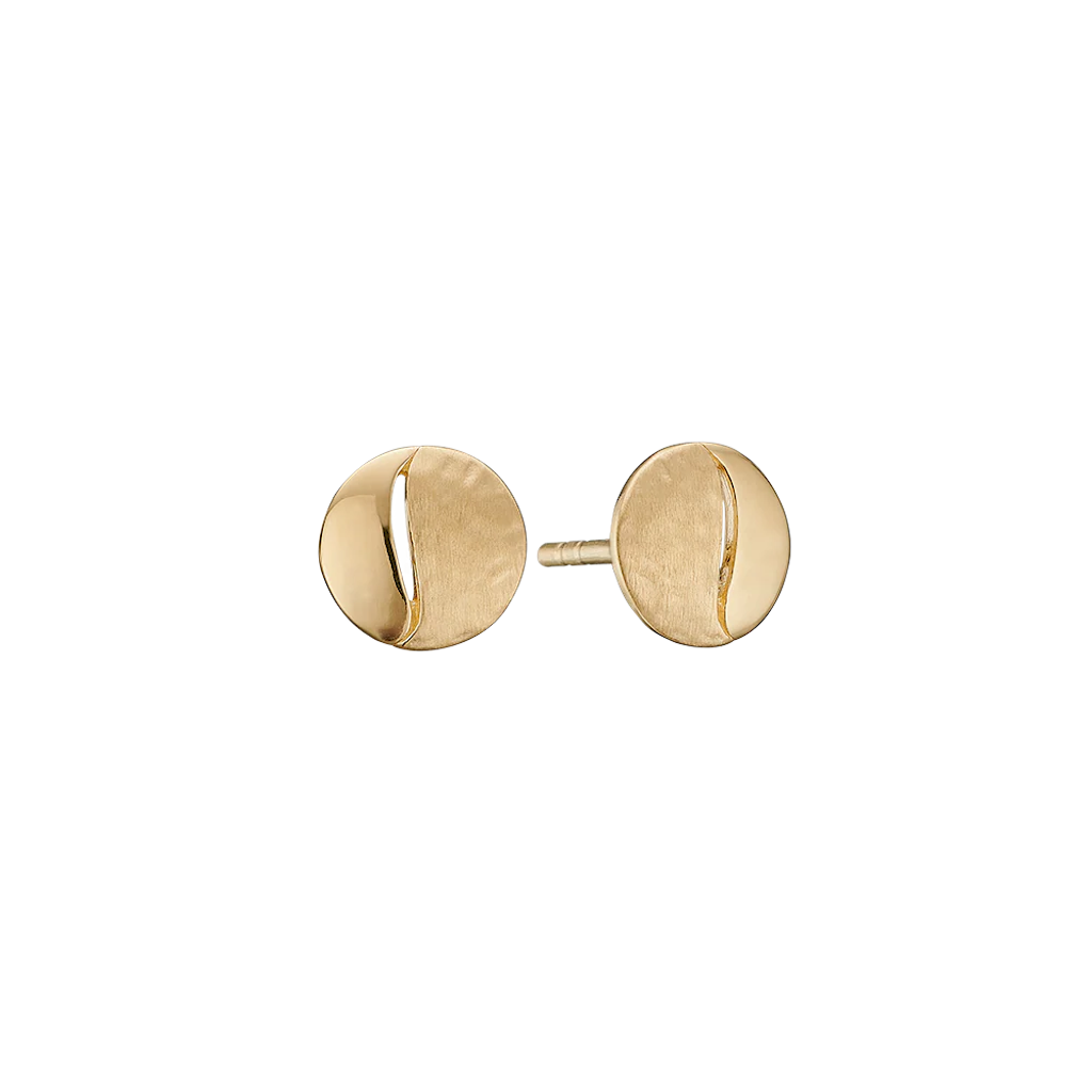 Fine øreringe i forgyldt sterling sølv med en blank og hammerslået overflade.