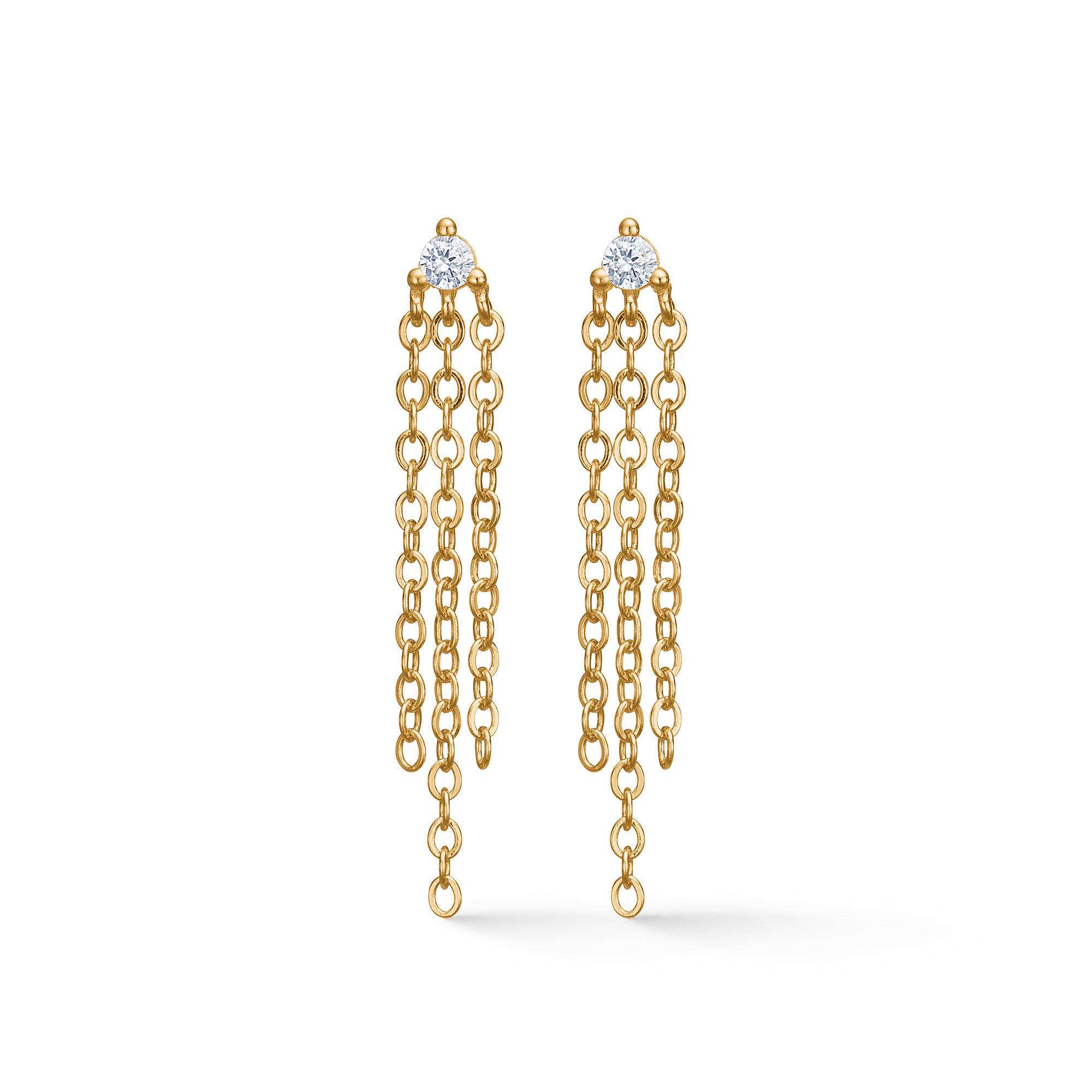Tilføj elegance og bevægelse til dit look med vores Ripple ørestik. Det enkle design med en funklende zirkonia-sten kombineres med tre fine kæder, der hænger frit og skaber et let, dynamisk udtryk. Et raffineret smykke, der tilføjer glans og karakter til enhver anledning.