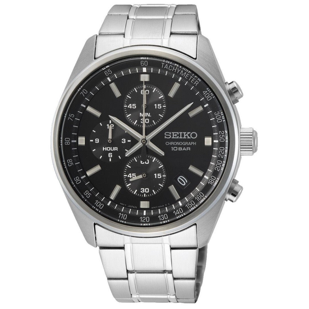 Dette quartzur fra Seiko SPORT-kollektionen har mange funktioner. Faktisk har dets dybblå urskive de tre tællere, der er specifikke for kronografer, og er omgivet af en krans med tachymeter. Denne model i 100 % rustfrit stål er også super solid med sit hardlex-glas, sin påskruede bagside og sin vandtæthed ned til 100 meter.