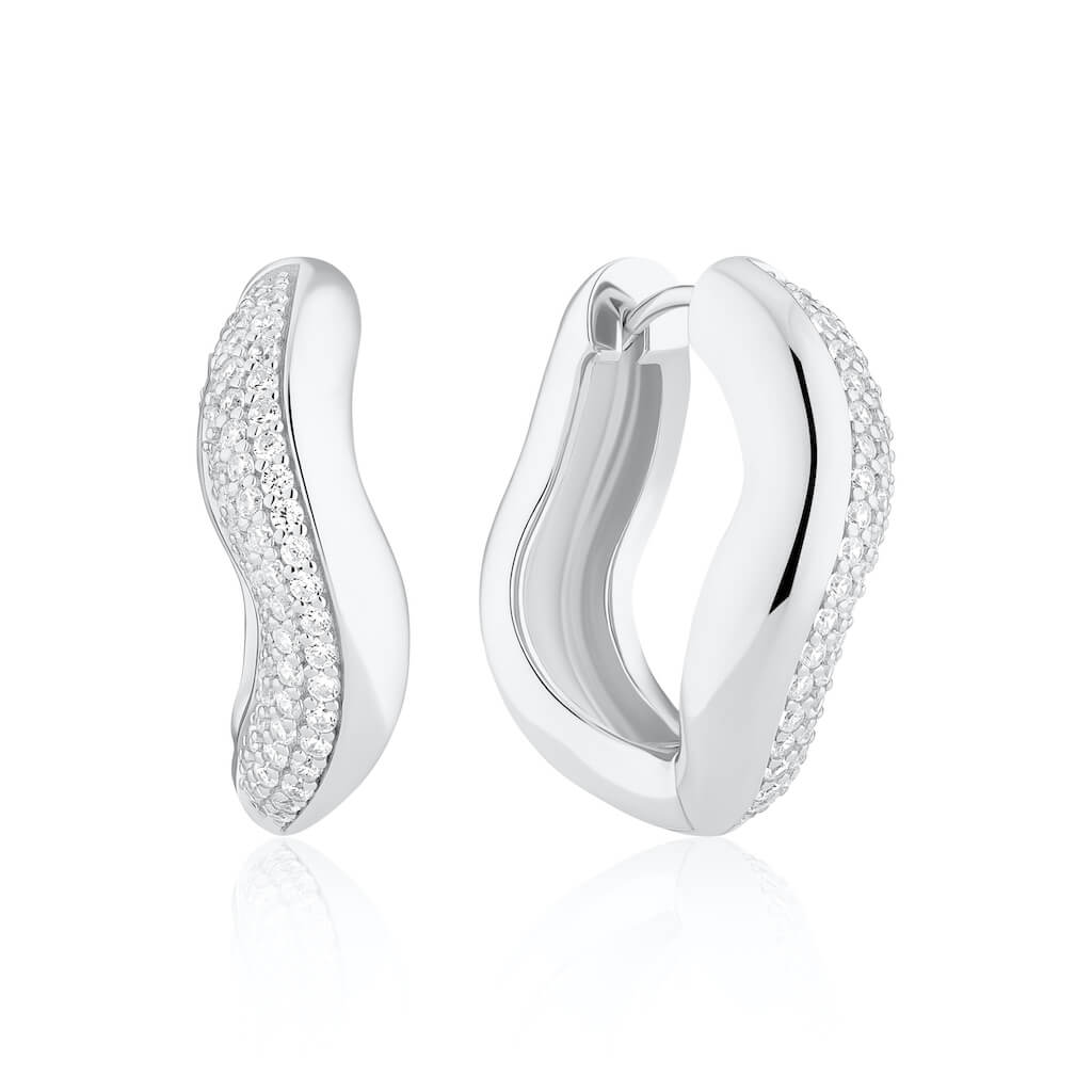 Øreringe i 925 rhodineret Sterlingsølv med poleret overflade og håndsatte facetslebne hvide zirkoner