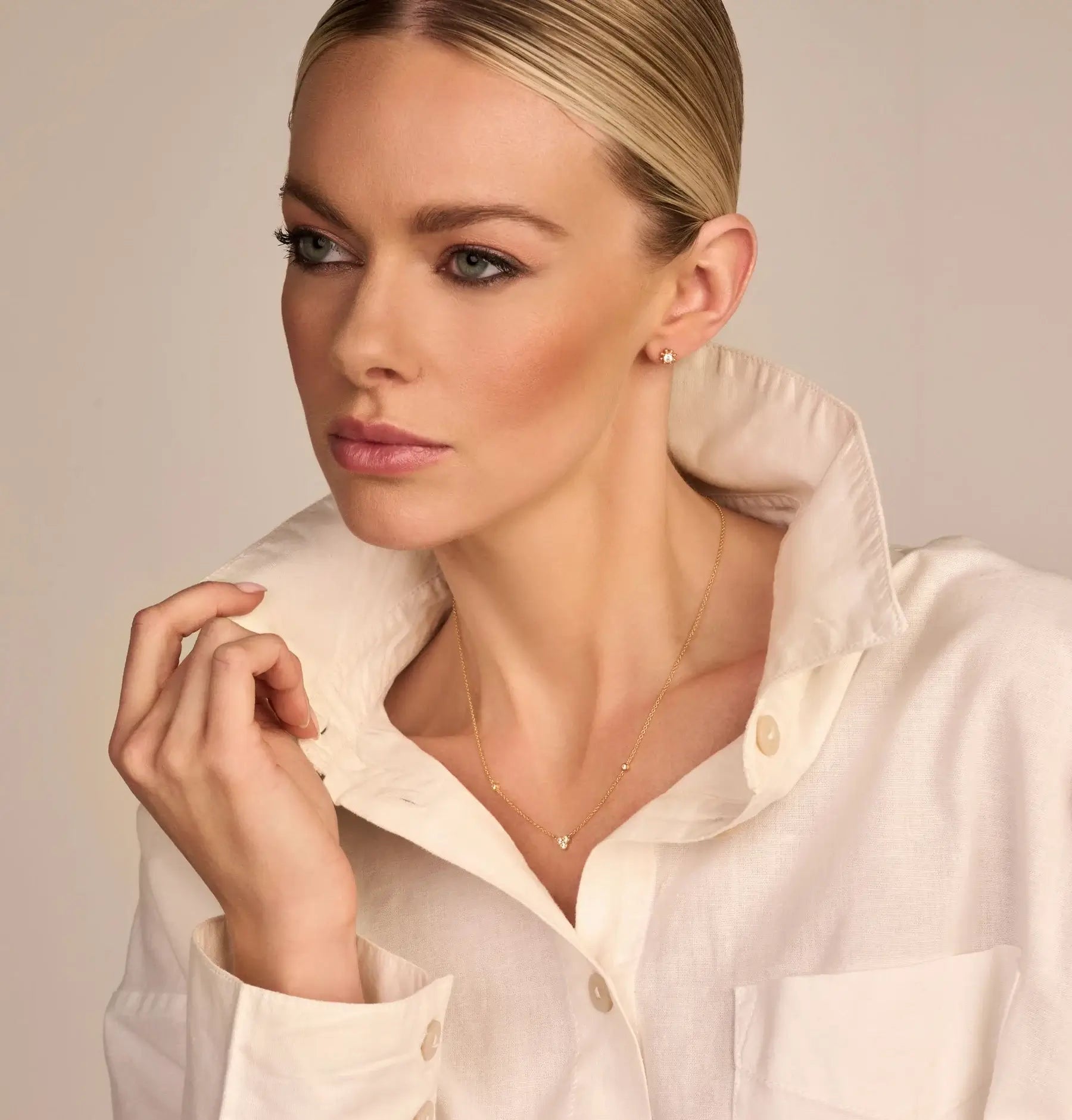 Alma Necklace er et smukt smykke med zirkonia-sten, fremstillet i genanvendt 18kt forgyldt 925 sterlingsølv. En bæredygtig og stilfuldt halskæde, der udstråler klassisk skønhed og omtanke for miljøet.