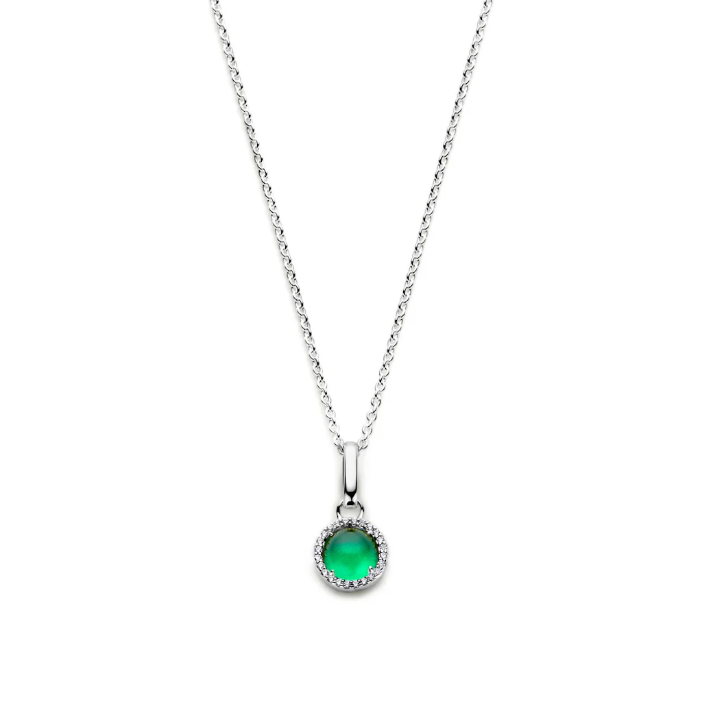 Euphoria halskæden er designet med en grøn agat omkranset af flotte zirkonia sten. Med Euphoria halskæden sætter du et strejf af glamour til dit outfit. Længden er justerbar til 42-45cm og lavet i 925 sterling sølv.