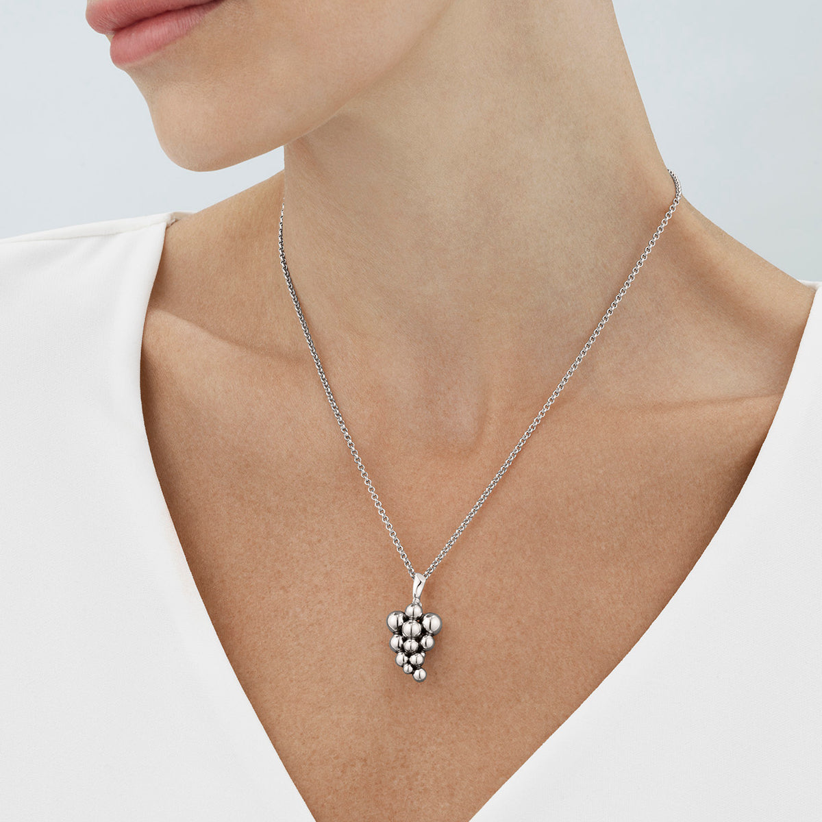 Opdag den tidløse elegance med Georg Jensen's Moonlight Grapes halskæde. Dette fine smykke i sterling sølv er en hyldest til klassisk skønhed og håndværk. Halskæden er en del af den anerkendte Moonlight Grapes kollektion, som er inspireret af naturens organiske former og Georg Jensens rige designhistorie.