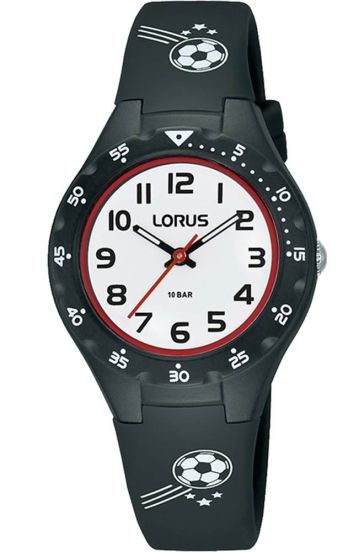 Sejt drenge ur med sort gummirem og hvid urskive fra mærket Lorus.
