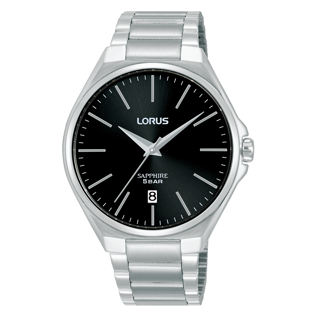 Uret har stål lænke, er vandtæt til 5 bar og har safirglas.