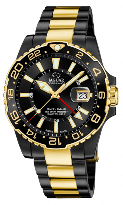 Dette luksuriøse ur er designet til at imponere med en imponerende vandtæthed på 20 ATM, safirglas og en keramisk lynette, et avanceret urværk med GMT-funktion, der ikke kun sikrer præcis tidtagning, men også giver mulighed for at spore tiden i flere tidszoner. Kort sagt, et godt bud på det perfekte ur!